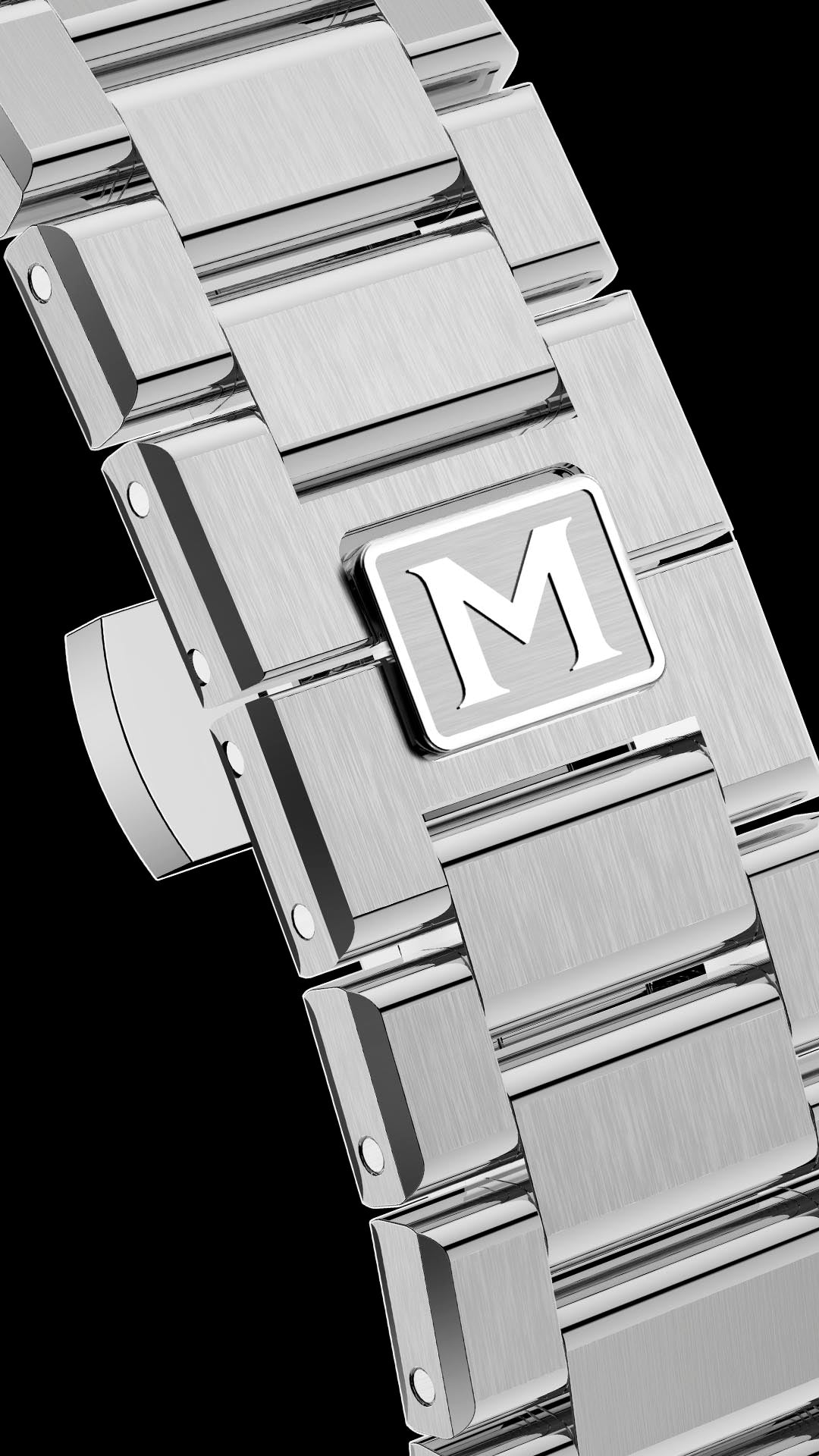 The Manhattan has an integrated stainless steel bracelet with hidden deployant clasp. The bracelet is connected to the case by means of four screws into the caseback. This small detail adds to the vintage character of the watch.