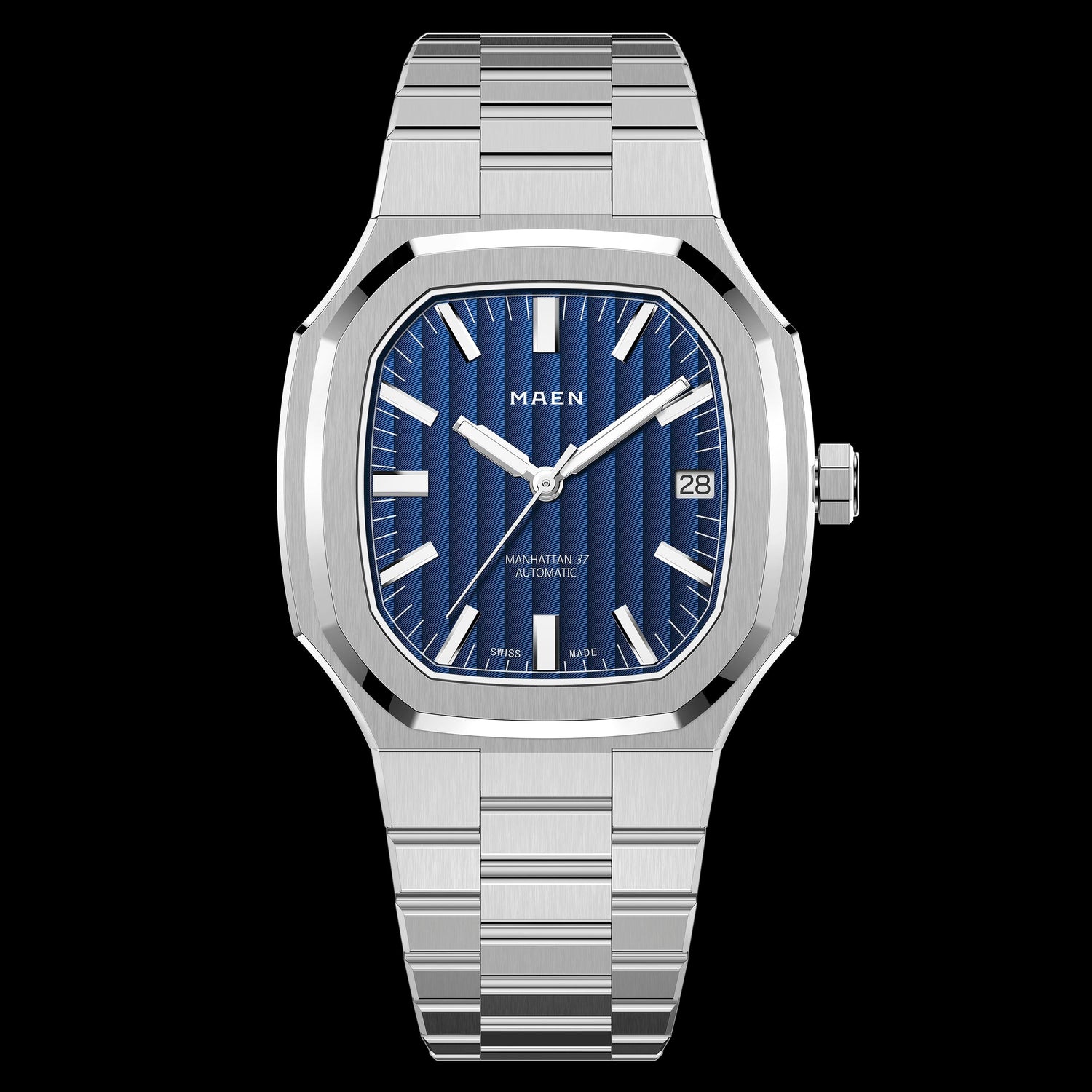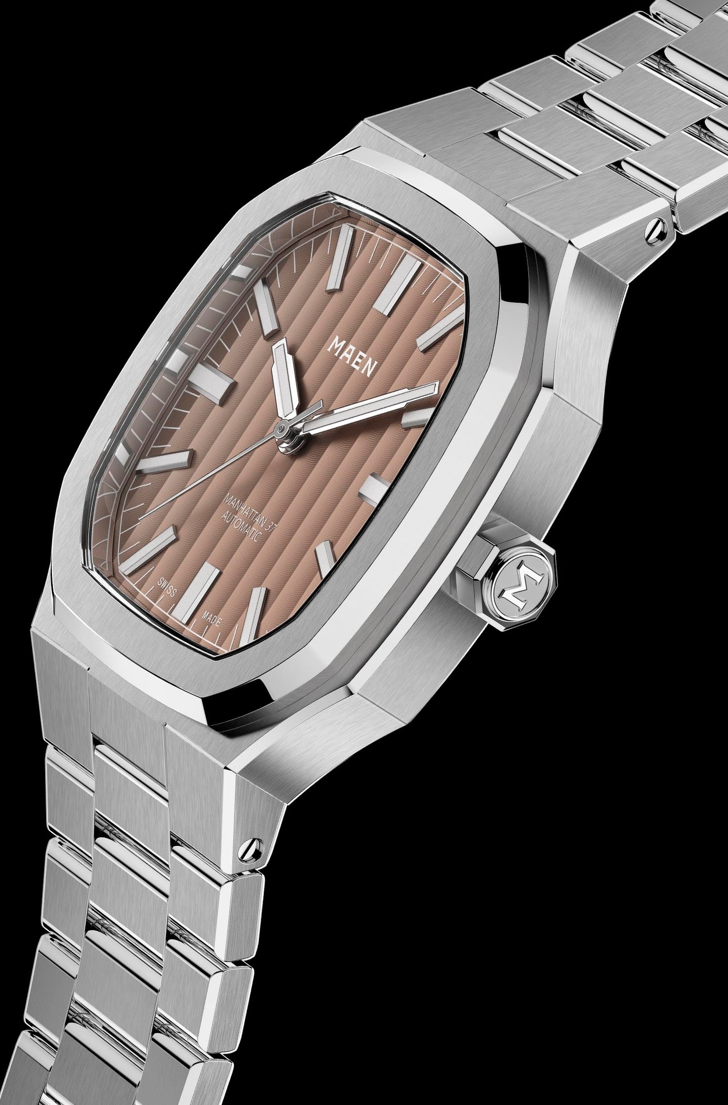 Our all new Manhattan 37 is a 70s inspired luxury watch with integrated bracelet. This model will come in four different dial variations. All with or without date.
