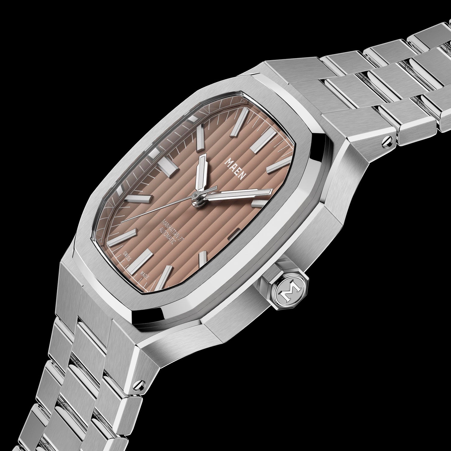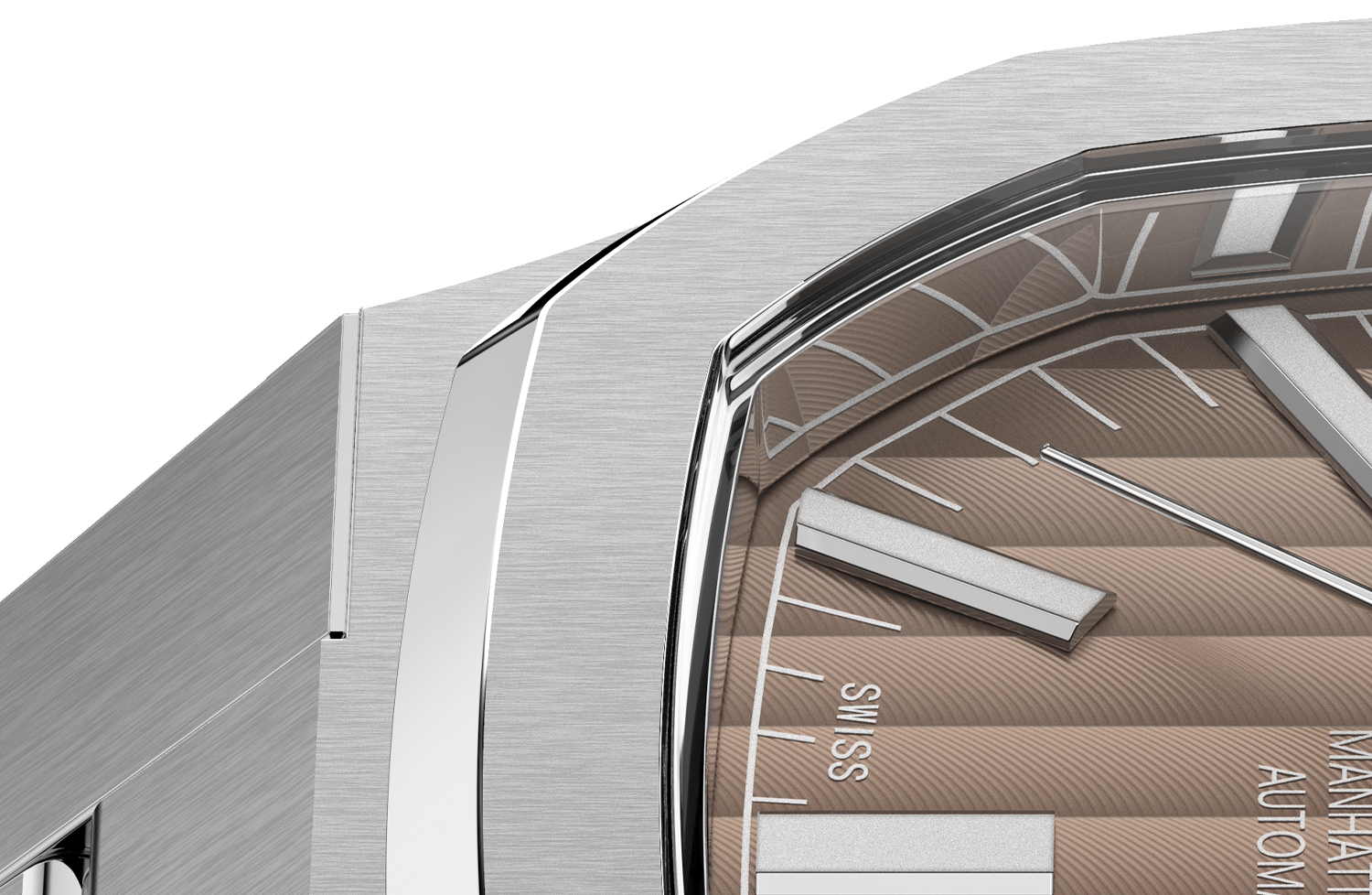 The Manhattan 37 has an unique vertically elongated Côtes de Genève dial that creates a spectrum of beautiful shimmers depending on the lighting.