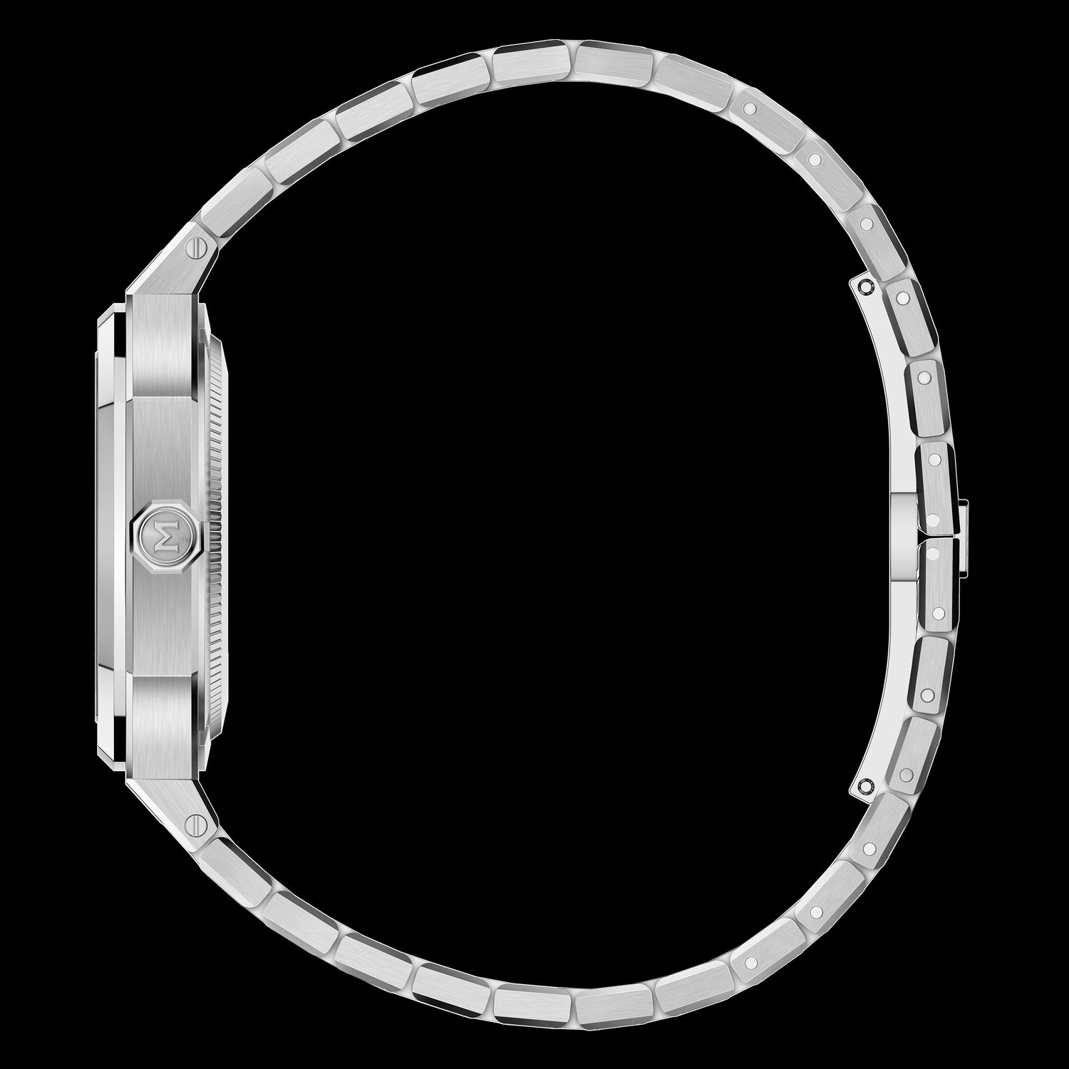 With its steel case, vertically elongated octagonal bezel, Côtes de Genève dial and integrated bracelet, the Manhattan 37 packs a lot of punch. Due to the integrated design the watch wears larger than its modest 37 mm would suggest.